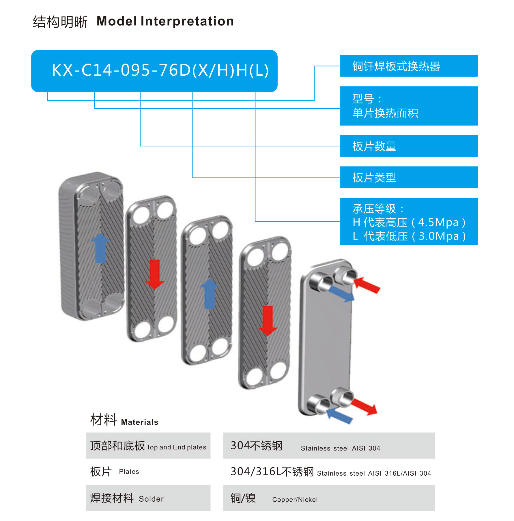 ◆H通道:傳熱系數(shù)高,阻力大。適用于小流量,但傳熱強(qiáng)(高比熱,有相變或大溫差)的情況,如:制冷劑相變傳熱。