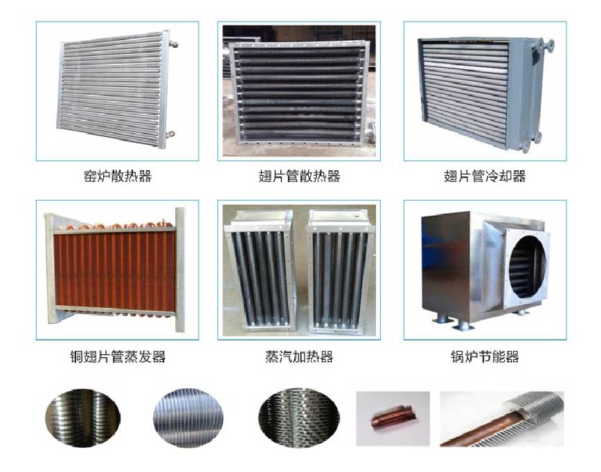 翅片換熱器的翅片管一般采用無(wú)縫鋼管(碳鋼,銅鋁,不銹鋼,鋼鋁復(fù)合、銅鋁復(fù)合)Φ25*2.0-50規(guī)格,不同的表面管數(shù)、排數(shù)和管長(zhǎng)可以組成多種規(guī)格的翅片散熱器。熱介質(zhì)的流動(dòng)可以單流程或多流程,換熱介質(zhì)工作壓力20MPa以下,工作溫度300C以下A目前我廠散熱器的主要品種有:高溫水或蒸汽散熱器(GL型、SRZ型、S型、U型、SRL型、L型等)高溫導(dǎo)熱油散熱器(FUL型)、表面空氣冷卻器(KL型、TL型)、油冷卻器(FL型)、鋁制串片式暖氣片、空氣冷卻器等。翅片管型式有:繞片式、擠壓式串片式等。翅我廠除定型產(chǎn)品外還