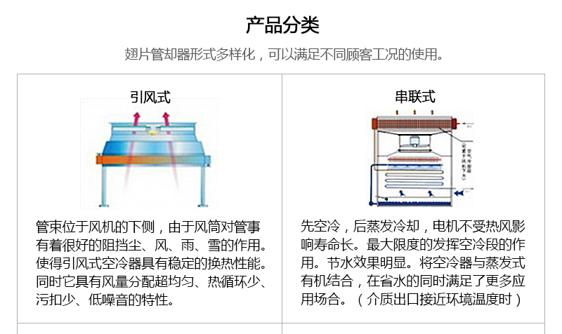 翅片管冷卻器也叫管翅式冷卻器,是熱交換中廣泛使用的一種換熱設(shè)備,隨著工業(yè)的發(fā)展,地球日益缺水、使用成本以及水污染等環(huán)境問題日益突出,翅片管冷卻器的應(yīng)用越來越受到重視,許多化工企業(yè)中90%以上冷卻負(fù)荷都使用翅片管冷卻器。