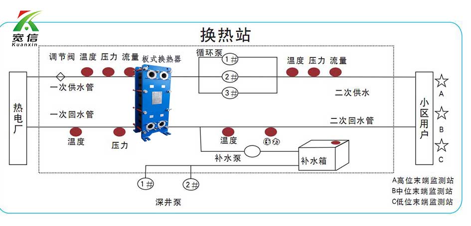 集中供熱系統(tǒng)包括熱源、熱網(wǎng)和熱用戶三部分。熱源所產(chǎn)生的蒸汽或熱水,通過管網(wǎng)向市區(qū)用戶供應(yīng)生產(chǎn)和生活用熱;而換熱器站是集中供熱網(wǎng)絡(luò)與熱用戶的接口,是熱源與熱用戶之間的“熱交換站”。換熱站能否高效運(yùn)行對(duì)改善整個(gè)熱網(wǎng)的熱力不足,提高供熱品質(zhì)起著至關(guān)重要的作用。