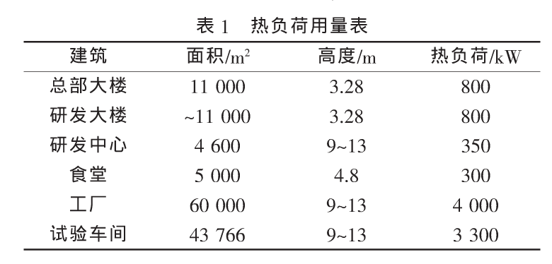 工廠運(yùn)行現(xiàn)狀待回收的煙氣為熱電聯(lián)產(chǎn)產(chǎn)生的煙氣,煙氣溫度為400℃,燃料為天然氣?;厥諢煔庵械挠酂?,作為冬季空調(diào)系統(tǒng)送風(fēng)熱源。冬季空調(diào)循環(huán)熱水的供回水溫度為60℃/50℃。某工廠的冬季熱負(fù)荷約9550kW(熱負(fù)荷見表1),煙氣余熱回收器的額定換熱量按10000kW取值計(jì)算,假定煙氣量足夠。
