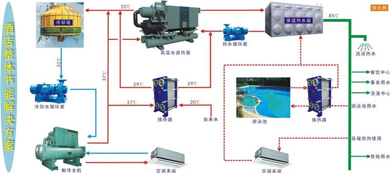 目前,在賓館、酒店大多采用中央窗戶、燃氣鍋爐或市政蒸汽等為客戶提供冷氣、洗浴熱水、暖氣和洗衣房洗滌、烘干使用的熱水、蒸汽、因而產(chǎn)生大量能源費用,其中有大部分的熱能被浪費了。在這里可以使用合肥寬信酒店賓館余熱回收換熱器將這部分熱量回收起來另作它用。