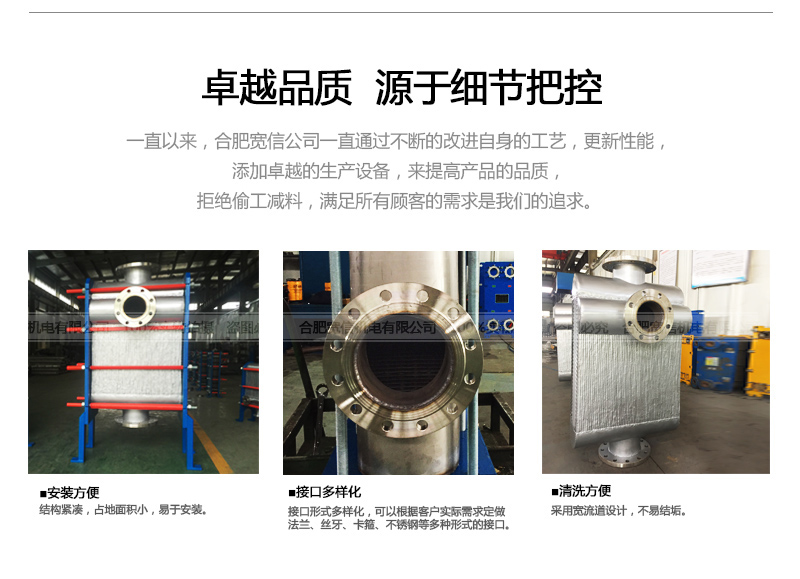 寬信公司是專業(yè)生產(chǎn)全焊換板式熱器的生產(chǎn)廠家,嚴(yán)格按照《NB/T47004-2009》板式換熱器國家標(biāo)準(zhǔn)執(zhí)行,寬信在生產(chǎn)板式換熱器的基礎(chǔ)上,研制開發(fā)了具有國際先進(jìn)技術(shù)水平的新一代智能換熱機(jī)組,具有傳熱效率高,阻力小,結(jié)構(gòu)緊湊,運(yùn)行可靠,操作簡單直觀等優(yōu)點(diǎn),是高效率節(jié)能產(chǎn)品。