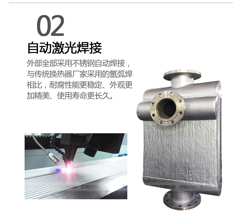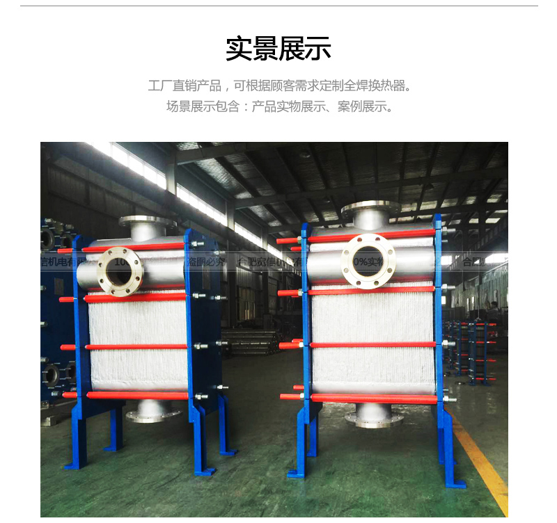 全焊式板式換熱器的板片不沖孔,分別在端面間隔焊成一個(gè)整體,冷熱介質(zhì)在每張板片的兩側(cè)進(jìn)行熱交換,流體壓力及壓力沖擊,主要由氬弧焊縫承受,無需密封墊。全焊式板式換熱器由于無密封墊,耐高溫高壓,溫度可承受300度高溫,壓力可達(dá)4.0MPa。介質(zhì)進(jìn)出口管徑靈活,可以根據(jù)工況要求任意制作接管通經(jīng),較為適合高壓、中大流量的氣-液、液-液間換熱。