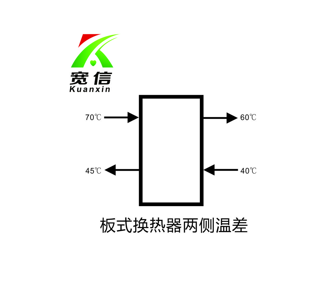 為了提高地熱熱能利用率,必須盡量地降低尾水排放溫度。以散熱器供暖方式為例說明板式換熱器兩側的溫降和流量由下圖可知,地熱水:一次側溫差為70-45=25攝氏度;二次側溫差為60-40=20攝氏度。換熱器兩側流量比為1.25。