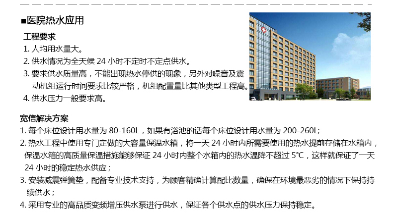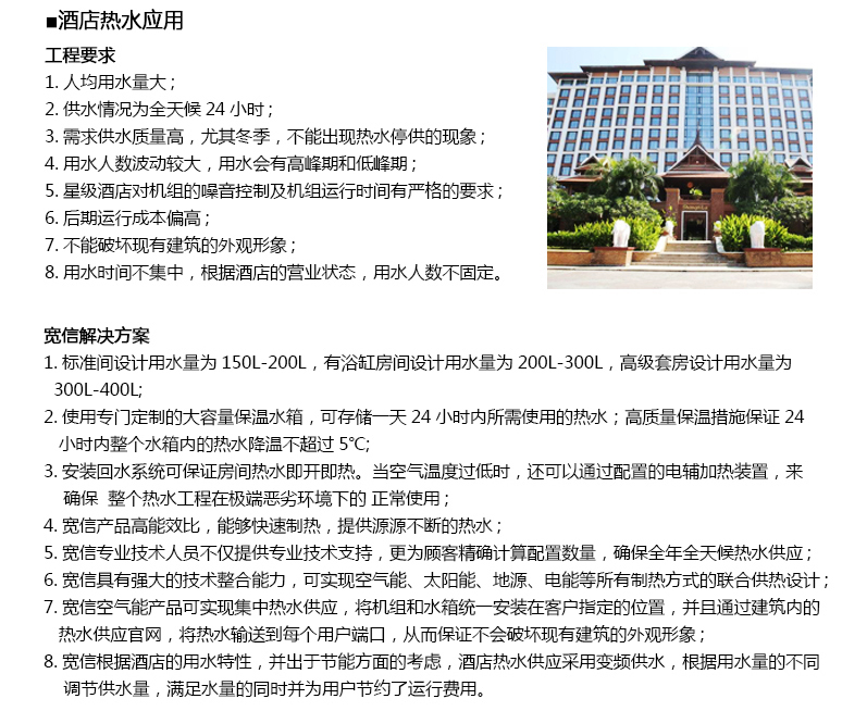 隨著人類文明的發(fā)展,人們可以建造出比單一熱水設備更大、更復雜的熱水系統(tǒng)設備。這些設備不再是結構或功能單一的產品,而是具備滿足個人或集體對熱水需求的“人造系統(tǒng)”。于是,熱水工程的概念就產生了,并且它逐漸發(fā)展為一門獨立的學科技術。近年來,人們正在對熱水工程的觀念正發(fā)生轉變。已不再是簡單的停留在高耗能的“鍋爐”層面了。隨著人們環(huán)保意識的加強,盡可能對環(huán)境少破壞、不破壞的新能源、綠色能源的熱水工程逐漸成為該領域的主流。http://www.zghonggan.com/project_rbrs.html